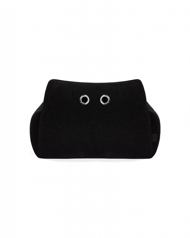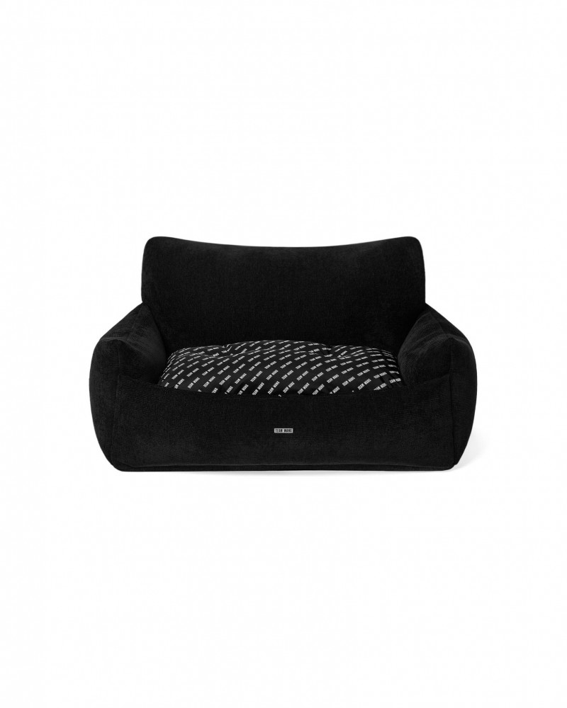 以柔软的灯芯绒面料打造,结合包覆式高背结构,为宠物提供稳定且舒适的休憩空间。可翻转坐垫采用双面设计——一面为灯芯绒材质,另一面为编织的 “TEAM WANG” 印花图案,适配四季场景。金属标牌与标志性大号金属气眼为整体增添品牌独有的设计语言。